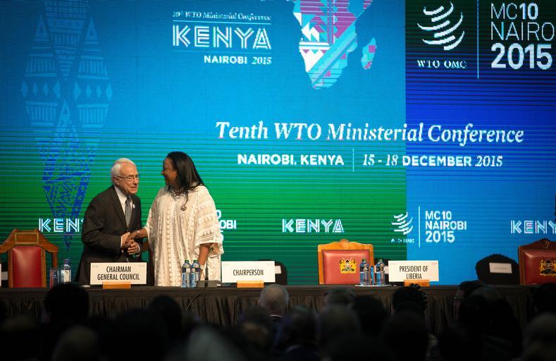 | Keywords: sign text KENYA, Nairobi: In a photograph taken by Make It Kenya 15 December 2015, Kenya's Cabinet Secretary for Foreign Affairs and Trade, Amina Mohamed, greets Fernando De Mateo Y Venturini, Chairman of the General Council of the World Trade Organisation (WTO) at the opening of the WTO ministerial conference in the Kenyan capital, Nairobi; the first to be held on African soil. MAKE IT KENYA PHOTO / STUART PRICE. KENYA, Nairobi: In a photograph taken by Make It Kenya 15 December 2015, Kenya's Cabinet Secretary for Foreign Affairs and Trade, Amina Mohamed, greets Fernando De Mateo Y Venturini, Chairman of the General Council of the World Trade Organisation (WTO) at the opening of the WTO ministerial conference in the Kenyan capital, Nairobi; the first to be held on African soil. MAKE IT KENYA PHOTO / STUART PRICE. |