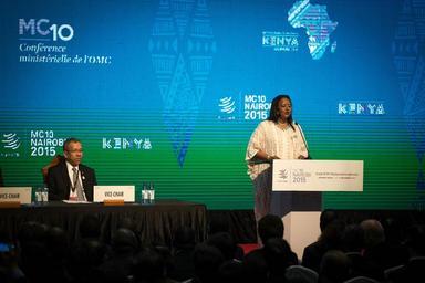 | Keywords: KENYA, Nairobi: In a photograph taken by Make It Kenya 15 December 2015, Kenya's Cabinet Secretary for Foreign Affairs and Trade, Amina Mohamed, speaks during the opening of the Tenth World Trade Organisation (WTO) ministerial conference in the Kenyan capital, Nairobi; the first to be held on African soil. MAKE IT KENYA PHOTO / STUART PRICE. KENYA, Nairobi: In a photograph taken by Make It Kenya 15 December 2015, Kenya's Cabinet Secretary for Foreign Affairs and Trade, Amina Mohamed, speaks during the opening of the Tenth World Trade Organisation (WTO) ministerial conference in the Kenyan capital, Nairobi; the first to be held on African soil. MAKE IT KENYA PHOTO / STUART PRICE. |