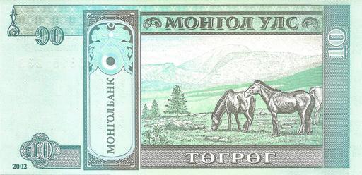 | Keywords: 10TugrikReverse.jpg en A scan showing the reverse of a 10 Tögrög banknote from Mongolia 2002 series own SailingThroughSpace 2011-05-01 Cc-zero Banknotes of Mongolia Banknotes with a face value of 10 Green banknotes Horses on banknotes Mountains on banknotes Trees on banknotes Paiza on banknotes |