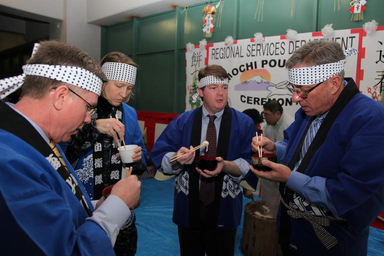 | Keywords: 110111-N-9999O-036 (5349073095).jpg From left John Goodhart the vice commander of Naval Supply Systems Command; U S Navy Cmdr Karen Little the regional services director of Fleet and Industrial Supply Center FISC Yokosuka; Bill Frazier the regional services deputy director of FISC; and Bill Bickert deputy commander of FISC eat traditional ozoni soup during a Japanese new year mochi-pounding welcome celebration in Yokosuka Japan Jan 11 2011 U S Navy photo/Released https //www flickr com/photos/39955793 N07/5349073095/ 110111-N-9999O-036 2011-01-11 11 33 https //www flickr com/people/39955793 N07 U S Department of Defense Current Photos PD-USGov U S Department of Defense Current Photos https //flickr com/photos/39955793 N07/5349073095 2016-09-03 15 31 59 United States Government Work Zoni Welcoming ceremonies United States Navy images from Yokosuka |