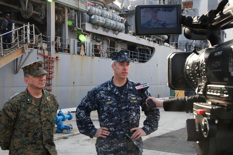 Keywords: 110116-A-0566T-025 (5367447751).jpg 110116-A-0566T-025 MAYPORT Fla January 16 2011 U S Navy Capt John Meier commanding officer of USS Gunston Hall LSD 44 and U S Marine Corps Lt Col Paul Baker Security Cooperation Task Force commander speaks with local media about Amphibious Southern Partnership Station 2011 A-SPS 11 The mission of A-SPS 11 is to conduct subject matter expert exchanges SMEE's with partner nation military and security forces that develop and test participating regional civil and maritime services' capabilities to respond to a wide variety of maritime missions U S Army photo by Sergeant Nashaunda Tilghman https //www flickr com/photos/39955793 N07/5367447751/ 110116-A-0566T-025 2011-01-16 10 02 https //www flickr com/people/39955793 N07 U S Department of Defense Current Photos PD-USGov U S Department of Defense Current Photos https //flickr com/photos/39955793 N07/5367447751 2016-09-03 15 33 08 United States Government Work Southern Partnership Station 2011 Naval Station Mayport |