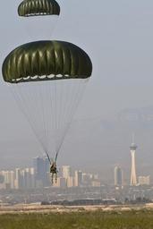 Keywords: 110415-F-KX404-099 (5640882504).jpg A U S Airman assigned to the Airborne Flight 820th Rapid Engineer Deployable Heavy Operational Repair Squadron Engineer RED HORSE Squadron descends April 15 2011 onto Nellis Air Force Base Nev after performing a static line jump from a Nevada National Guard CH-47 Chinook helicopter Airborne RED HORSE units are different than traditional RED HORSE units in that members are airborne qualified and use much lighter specialized equipment DoD photo by Senior Airman Brett Clashman U S Air Force/Released https //www flickr com/photos/39955793 N07/5640882504/ 110415-F-KX404-099 2011-04-15 06 31 https //www flickr com/people/39955793 N07 U S Department of Defense Current Photos PD-USGov U S Department of Defense Current Photos https //flickr com/photos/39955793 N07/5640882504 2016-09-03 14 33 47 United States Government Work Parachuting from CH-47 Chinook Nellis Air Force Base Military in Nevada Nevada Army National Guard Helicopters Parachutes United States Army