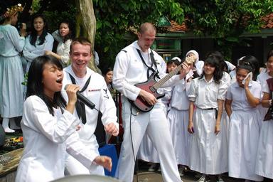 | Keywords: 110527-N-VP123-771 (5804578190).jpg U S Navy Musician 3rd Class Gabriel Brown second from left a member of the U S Navy 7th Fleet Band invites an Indonesian high school student to sing May 27 2011 during a concert as part of Cooperation Afloat Readiness and Training CARAT 2011 in Jakarta Indonesia CARAT is a series of bilateral exercises held annually in Southeast Asia to strengthen relationships and enhance force readiness DoD photo by Lt Cmdr Mike Morley U S Navy/Released https //www flickr com/photos/39955793 N07/5804578190/ 110527-N-VP123-771 2011-05-27 12 47 https //www flickr com/people/39955793 N07 U S Department of Defense Current Photos PD-USGov U S Department of Defense Current Photos https //flickr com/photos/39955793 N07/5804578190 2016-09-03 14 33 37 United States Government Work Indonesia Jakarta United States Department of Defense |