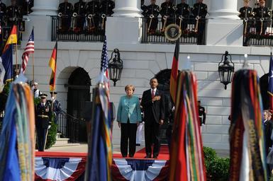 | Keywords: white house whitehouse president chancellor obama merkel germany ceremonial navy band navyband navy ceremonial band navyceremonialband 110607-N-HG258-098 WASHINGTON, D.C. (June 7, 2011) Angela Merkel, chancellor of Germany, left, and President Barack Obama, right, stand as the U.S. Navy Band playes the national anthems of Germany and the U.S. as part of the arrival ceremony welcoming the chancellor of the Federal Republic of Germany, Angela Merkel. Military arrival ceremonies for visiting dignitaries have been held on the south lawn of the White House since the Kennedy administration. (U.S. Navy Photo by MUC Stephen Hassay/Released) 110607-N-HG258-098 WASHINGTON, D.C. (June 7, 2011) Angela Merkel, chancellor of Germany, left, and President Barack Obama, right, stand as the U.S. Navy Band playes the national anthems of Germany and the U.S. as part of the arrival ceremony welcoming the chancellor of the Federal Republic of Germany, Angela Merkel. Military arrival ceremonies for visiting dignitaries have been held on the south lawn of the White House since the Kennedy administration. (U.S. Navy Photo by MUC Stephen Hassay/Released) |