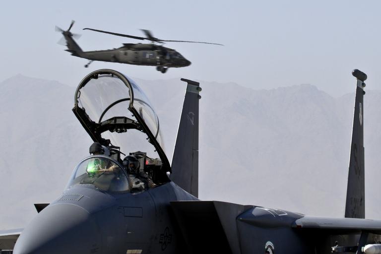 Keywords: u.s. air force usairforce u.s. army usarmy rc east rceast rce oef operation enduring freedom operationenduringfreedom afghanistan bagram baf usaf air force airforce cas close air support closeairsupport military photo f-15e f15e strike eagle strikeeagle airman airmen maintenance army 335th fighter squadron fightersquadron 335th fighter squadron 335thfightersquadron bagram air field bagramairfield strike eagle fighter squadron operation enduring freedom f-15 f15 afterburner take off airplane aircraft combat close air support aviation conflict pilot pilots weapons bombs creative commons royalty free public domain photograph digital matt hecht getty reuters ap U.S. Air Force F-15E Strike Eagles from the 335th Expeditionary Fighter Squadron prep for close air support (CAS) missions at Bagram Air Field, Afghanistan on Oct. 27, 2011. Strike Eagles are all-weather multirole fighters that provide CAS for coalition troops. (U.S. Air National Guard photo by Tech. Sgt. Matt Hecht/Released) U.S. Air Force F-15E Strike Eagles from the 335th Expeditionary Fighter Squadron prep for close air support (CAS) missions at Bagram Air Field, Afghanistan on Oct. 27, 2011. Strike Eagles are all-weather multirole fighters that provide CAS for coalition troops. (U.S. Air National Guard photo by Tech. Sgt. Matt Hecht/Released)