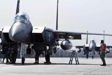| Keywords: u.s. air force usairforce u.s. army usarmy rc east rceast rce oef operation enduring freedom operationenduringfreedom afghanistan bagram baf usaf air force airforce cas close air support closeairsupport military photo f-15e f15e strike eagle strikeeagle airman airmen maintenance army 335th fighter squadron fightersquadron 335th fighter squadron 335thfightersquadron bagram air field bagramairfield strike eagle fighter squadron operation enduring freedom f-15 f15 afterburner take off airplane aircraft combat close air support aviation conflict pilot pilots weapons bombs creative commons royalty free public domain photograph digital matt hecht getty reuters ap outdoor vehicle U.S. Air Force F-15E Strike Eagles from the 335th Expeditionary Fighter Squadron prep for close air support (CAS) missions at Bagram Air Field, Afghanistan on Oct. 27, 2011. Strike Eagles are all-weather multirole fighters that provide CAS for coalition troops. (U.S. Air National Guard photo by Tech. Sgt. Matt Hecht/Released) U.S. Air Force F-15E Strike Eagles from the 335th Expeditionary Fighter Squadron prep for close air support (CAS) missions at Bagram Air Field, Afghanistan on Oct. 27, 2011. Strike Eagles are all-weather multirole fighters that provide CAS for coalition troops. (U.S. Air National Guard photo by Tech. Sgt. Matt Hecht/Released) |