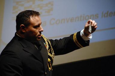 MAKE A MEME View Large Image 111910-N-5145S-018 (5202183456).jpg U S Navy Lt John F Pucillo shows his identification card made shortly after the incident that caused him to lose his left leg in a speech about giving your life purpose after a debilitating injury at the ...