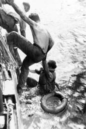 | Keywords: blackandwhite monochrome outdoor black and white 111-SC-278010: Battle of Leyte Gulf, Battle off Samar, October 25, 1944. American survivors of the battle are rescued by a U.S. Navy ship on October 26, 1944. Some 1,200 survivors of Gambier Bay (CV 73), USS Hoel (DD 533), USS Johnston (DD 577) and USS Samuel B. Roberts (DE 413) were rescued during the days following the action. Photographed by Private William Roof, USA. U.S. Army Signal Corps Photograph, now in the collection of the National Archives. (2016/08/01). 111-SC-278010: Battle of Leyte Gulf, Battle off Samar, October 25, 1944. American survivors of the battle are rescued by a U.S. Navy ship on October 26, 1944. Some 1,200 survivors of Gambier Bay (CV 73), USS Hoel (DD 533), USS Johnston (DD 577) and USS Samuel B. Roberts (DE 413) were rescued during the days following the action. Photographed by Private William Roof, USA. U.S. Army Signal Corps Photograph, now in the collection of the National Archives. (2016/08/01). |