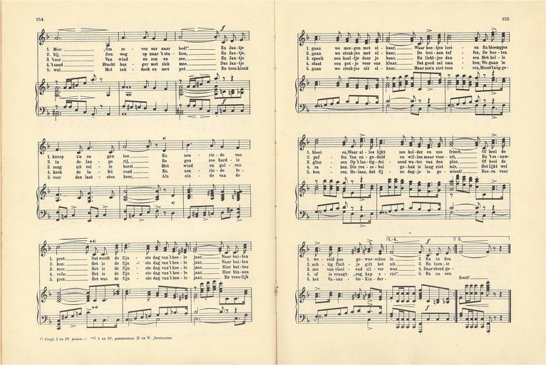 Keywords: 112 Vacantie - Kinderfeest, pagina 154 & 155.jpg Kun je nog zingen zing dan mee Muziek en teksten origineel gepubliceerd voor 1900 own 1915 author PD-old Kun je nog zingen zing dan mee