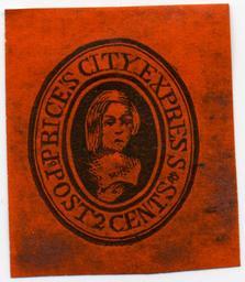 | Keywords: 119L1 1857-58 Price's City Express - Post 2 Cents - Red.jpg 1857-1858 local Price's City Express 2-cent US postage stamp imperforate Scott 119L1 black on red Scanned by me from a stamp from my collection 2006-12-16 R A Nonenmacher PD-old 1857 stamps Local Stamps of the United States Local 119L1 People of the United States on stamps |