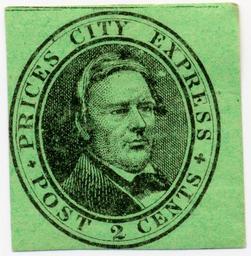 | Keywords: 119L3 1858 Prices City Epress - Post 2 Cents - Green.jpg 1858 local Price's City Express 2-cent US postage stamp imperforate Scott 119L3 black on green Scanned by me from a stamp from my collection 2006-12-16 R A Nonenmacher PD-old 1858 stamps Local Stamps of the United States Local 119L3 People of the United States on stamps |