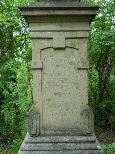 | Keywords: 11. kříž na cestě do Mohelna v zatáčce nad řekou- Tkaného detail01.JPG cs Kříž je vytesaný celý z pískovce Zvláštností je že podstavec je ze všech stran popsaný Nápisy jsou těžko čitelné Kříž je zbudovaný na náklady Josefa Tkaného Na spodku podstavce je zobrazen bývalý železný most a uvedeno jméno budovatele Josef Tkaný mlynář z mohelského mlýna own Obecdukovany 1902 n Vysočina Region Crosses in Vysočina Region Dukovany | ||||