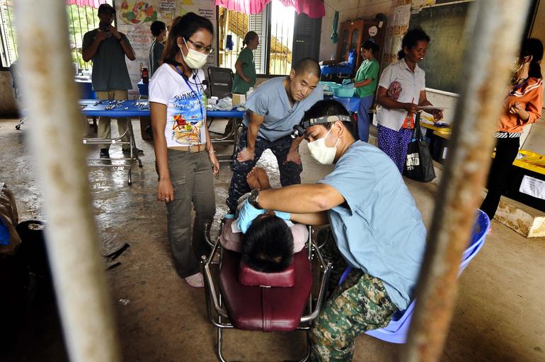 | Keywords: 120803-O-ZZ999-024 (7726653048).jpg U S Navy Lt Christopher Chung watches as Kong Bunho a member of the Royal Cambodian Air Force performs a dental procedure during a medical civic action project MEDCAP at Kandol Dom Primary School for Pacific Partnership 2012 in Sihanoukville Cambodia Aug 3 2012 MEDCAPs provide free medical dental and optometry care to host nation patients and provide training and subject matter exchanges between the service members and civilians working on PP12 and the host nation medical personnel Pacific Partnership is an annual deployment of forces designed to strengthen maritime and humanitarian partnerships during disaster relief operations while providing humanitarian medical dental and engineering assistance to nations of the Pacific DoD photo by Kristopher Radder U S Navy/Released https //www flickr com/photos/39955793 N07/7726653048/ 120803-O-ZZ999-024 2012-08-02 23 06 https //www flickr com/people/39955793 N07 U S Department of Defense Current Photos PD-USGov U S Department of Defense Current Photos https //flickr com/photos/39955793 N07/7726653048 2016-09-03 10 17 18 United States Government Work Health in Cambodia Pacific Partnership 2012 Sihanoukville |