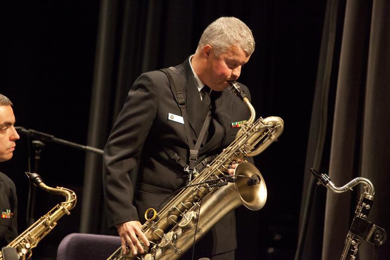 | Keywords: commodores rob holmes robholmes music musician performer people brass instrument indoor black background 121005-N-AI329-011 Columbia, Md. (October 5, 2012 ) MUC Robert Holmes performs on baritone saxophone during a concert at Howard County Community College in Columbia, Md. The Commodores are the Navy's premier jazz ensemble. (U.S. Navy photo by Musician First Class Jeremy Buckler/Released) 121005-N-AI329-011 Columbia, Md. (October 5, 2012 ) MUC Robert Holmes performs on baritone saxophone during a concert at Howard County Community College in Columbia, Md. The Commodores are the Navy's premier jazz ensemble. (U.S. Navy photo by Musician First Class Jeremy Buckler/Released) |