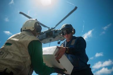 | Keywords: 121012-N-LV331-260 (8097174277).jpg U S Sailors assigned to the guided missile cruiser USS Mobile Bay CG 53 move supplies off the ship ™s flight deck as an MH-60S Knighthawk helicopter arrives with more goods during a vertical replenishment with the fast combat support ship USNS Bridge T-AOE 10 Oct 12 2012 in the Indian Ocean Mobile Bay part of the John C Stennis Carrier Strike Group was under way in the U S 7th Fleet area of responsibility conducting maritime security operations and theater security cooperation efforts DoD photo by Mass Communication Specialist 2nd Class Armando Gonzales U S Navy/Released https //www flickr com/photos/39955793 N07/8097174277/ 121012-N-LV331-260 2012-10-12 12 01 https //www flickr com/people/39955793 N07 U S Department of Defense Current Photos PD-USGov U S Department of Defense Current Photos https //flickr com/photos/39955793 N07/8097174277 2016-09-03 09 57 49 United States Government Work United States Department of Defense |
