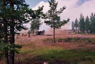 | Keywords: 122mm howitzer in Rovajärvi Jul1997 003.jpg en Finnish field artillery conscripts training anti-tank warfare by direct fire in the Rovajärvi military shooting range in northern Finland The weapon is 122 mm howitzer D-30 fi Kenttätykistön varusmiehet kokeilevat panssarintorjuntaa suorasuuntauksella Rovajärven ampuma-alueella Tykki on 122 H 63 -haupitsi own Methem Mikko J Putkonen 1997-07 1997 in Finland Artillery of Finland D-30 122 mm howitzer Rovajärvi | ||||