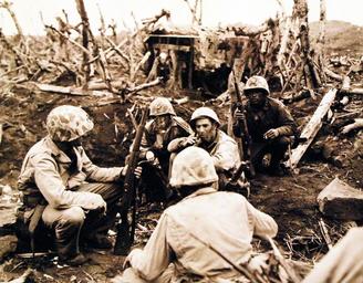 | Keywords: outdoor 127-GW-302-111353: Battle for Iwo Jima, February-March 1945. Captain Joseph Lombardi, (center), discussing plans with his men who are preparing to take a blockhouse which is holding up their company lines at the cliffs of north of East Boat Basin. Photographed by Sgt. N. Ragus, March 4, 1945. U.S. Marine Corps photograph, now in the collections of the National Archives. (2016/02/17). 127-GW-302-111353: Battle for Iwo Jima, February-March 1945. Captain Joseph Lombardi, (center), discussing plans with his men who are preparing to take a blockhouse which is holding up their company lines at the cliffs of north of East Boat Basin. Photographed by Sgt. N. Ragus, March 4, 1945. U.S. Marine Corps photograph, now in the collections of the National Archives. (2016/02/17). |