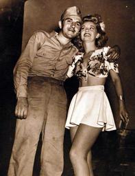 | Keywords: 127-GW-902-80525: Guadalcanal Campaign, August 1942-January 1943. Boy Meets Girl. Inasmuch as Marine Corporal Edward J. Grabowski, left, was on hand with his camera to take a picture of Mary Eliot, right, movie actress and one of the first women to set foot on the South Pacific jungle island at which Corporal Grabowski was serving, it was only fair that another cameraman did him the favor of showing the girls back in Benson that he what he doing. U.S. Marine Corps Photograph, now in the collections of the National Archives. (2016/09/13). 127-GW-902-80525: Guadalcanal Campaign, August 1942-January 1943. Boy Meets Girl. Inasmuch as Marine Corporal Edward J. Grabowski, left, was on hand with his camera to take a picture of Mary Eliot, right, movie actress and one of the first women to set foot on the South Pacific jungle island at which Corporal Grabowski was serving, it was only fair that another cameraman did him the favor of showing the girls back in Benson that he what he doing. U.S. Marine Corps Photograph, now in the collections of the National Archives. (2016/09/13). |