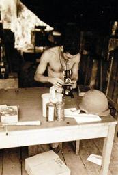 | Keywords: 127-GW-913-52161: Fighting Malaria. In an improved laboratory on Guadalcanal, a pharmacist’s mate looks through a microscope searching for evidence of malaria. U.S. Navy and Marine doctors and technicians are waging a constant war against the disease which is prevalent in the tropical zone. U.S. Marine Corps Photograph, now in the collections of the National Archives. (2016/09/13). 127-GW-913-52161: Fighting Malaria. In an improved laboratory on Guadalcanal, a pharmacist’s mate looks through a microscope searching for evidence of malaria. U.S. Navy and Marine doctors and technicians are waging a constant war against the disease which is prevalent in the tropical zone. U.S. Marine Corps Photograph, now in the collections of the National Archives. (2016/09/13). |