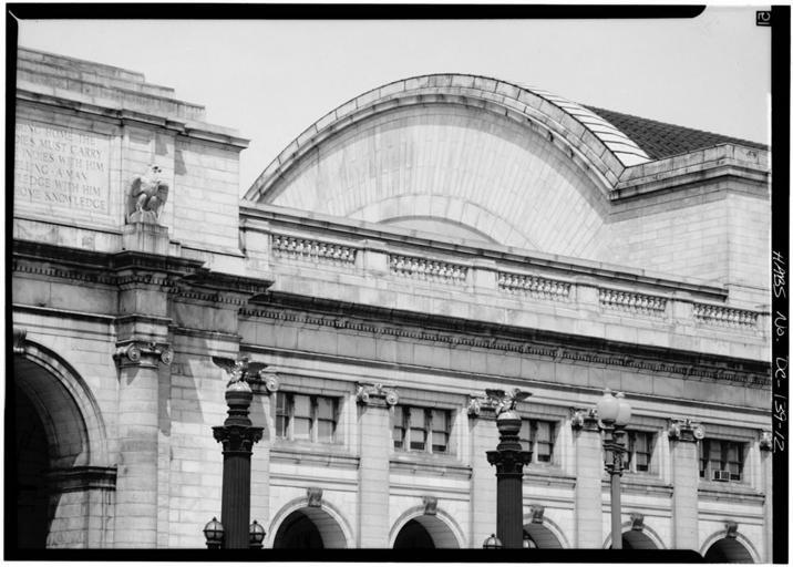 | Keywords: 12. DETAIL, ARCHED CENTRAL ROOF, FROM THE SOUTH - Union Station030021pv.jpg en Union Station 50 Massachusetts Avenue Northeast Washington District of Columbia DC 12 DETAIL ARCHED CENTRAL ROOF FROM THE SOUTH 5 x 7 in accession number Reproduction Number HABS DC WASH 536--12 Call Number HABS DC WASH 536--12 Repository Library of Congress Prints and Photographs Division Washington D C 20540 USA http //hdl loc gov/loc pnp/pp print LOC-image hhh dc0254/photos 030021p Creator Jack Boucher Rights Advisory No known restrictions on images made by the U S Government; images copied from other sources may be restricted http //www loc gov/rr/print/res/114_habs html 38 895 -77 03667 DC WASH 536--12 Union Station Washington D C Uploaded with UploadWizard |