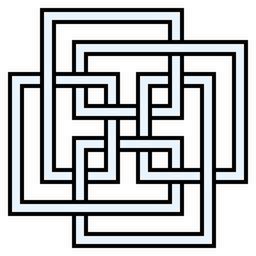 | Keywords: 12crossings-4symmetrical-square.svg Decorative knot with twelve crossings depicted with four-fold symmetry This is topologically equivalent to File 12crossings-fourfold-symmetric svg and File Circular-cross-decorative-knot-12crossings svg see http //katlas math toronto edu/wiki/K12a975 but only uses orthogonal straight lines Self-made graphic converted from the following vector PostScript source code <pre> 18 setlinewidth 92 96 1 setrgbcolor/X 5 add 72 mul exch 5 add 72 mul exch def/l X lineto def 7 6 X moveto 2 6 l 2 4 l 5 4 l 5 7 l 1 7 l 1 2 l 3 2 l 3 5 l 0 5 l 0 1 l 5 1 l 5 3 l 2 3 l 2 0 l 6 0 l 6 5 l 4 5 l 4 2 l 7 2 l closepath gsave 0 setgray 36 setlinewidth stroke grestore stroke 92 96 1 setrgbcolor/r 72 mul exch 72 mul exch rlineto def 36 setlinewidth 0 setgray 4 5 6 X moveto 1 0 r stroke 1 4 5 X moveto 0 1 r stroke 1 5 5 X moveto 1 0 r stroke 2 5 4 X moveto 1 0 r stroke 6 1 5 X moveto 0 1 r stroke 1 5 1 X moveto 1 0 r stroke 3 5 3 X moveto 1 0 r stroke 4 5 2 X moveto 1 0 r stroke 2 1 5 X moveto 0 1 r stroke 3 2 5 X moveto 0 1 r stroke 4 3 5 X moveto 0 1 r stroke 5 4 5 X moveto 0 1 r stroke 92 96 1 setrgbcolor 18 setlinewidth 4 48 6 X moveto 1 04 0 r stroke 1 4 48 X moveto 0 1 04 r stroke 1 48 5 X moveto 1 04 0 r stroke 2 48 4 X moveto 1 04 0 r stroke 6 1 48 X moveto 0 1 04 r stroke 1 48 1 X moveto 1 04 0 r stroke 3 48 3 X moveto 1 04 0 r stroke 4 48 2 X moveto 1 04 0 r stroke 2 1 48 X moveto 0 1 04 r stroke 3 2 48 X moveto 0 1 04 r stroke 4 3 48 X moveto 0 1 04 r stroke 5 4 48 X moveto 0 1 04 r stroke showpage EOF</pre> 2010 AnonMoos 12 crossing number knots and links Knots knot theory Decorative knots Images with PostScript source code Knots with 4-fold rotational symmetry Chiral images with rotational symmetry Knots and links on transparent background Outline knots and links |