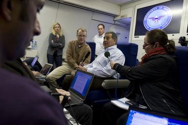 | Keywords: 130114-D-BW835-086 (8383744149).jpg Secretary of Defense Leon E Panetta second from right briefs members of the media while flying over the Atlantic Ocean en route to Lisbon Portugal Jan 14 2013 Panetta was on a six-day trip to Europe to visit with foreign counterparts and troops in the area DoD photo by Erin A Kirk-Cuomo/Released https //www flickr com/photos/39955793 N07/8383744149/ 130114-D-BW835-086 2013-01-14 11 41 https //www flickr com/people/39955793 N07 U S Department of Defense Current Photos PD-USGov U S Department of Defense Current Photos https //flickr com/photos/39955793 N07/8383744149 2016-09-03 09 37 45 United States Government Work United States Department of Defense |
