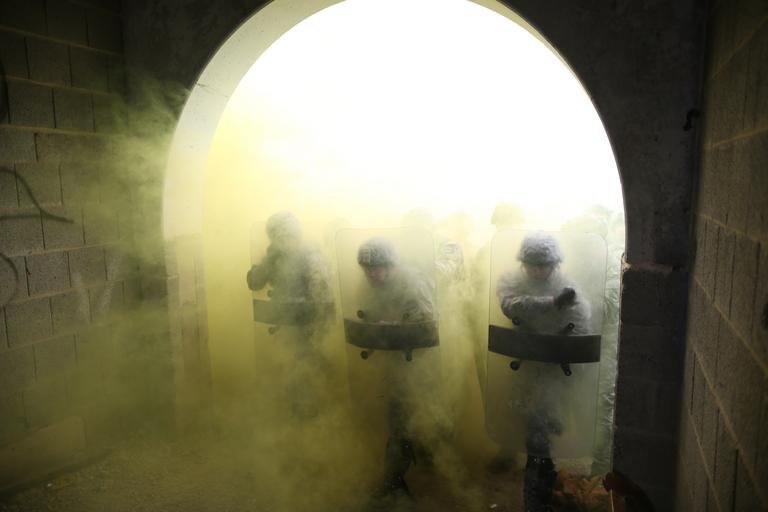 MAKE A MEME View Large Image 130512-A-HJ139-078 (8741774574).jpg U S Soldiers with the 525th Battlefield Surveillance Brigade advance through a tunnel while conducting riot control operations during a Kosovo Force KFOR mission rehearsal exercise MRE at the Joint ...