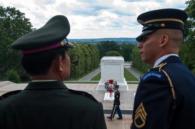 | Keywords: 130606-A-AO884-309 (9007080432).jpg U S Army Staff Sgt Michael Buelna right explains the changing of the guard at the Tomb of the Unknowns to Commander-in-Chief of the Royal Thai Army Gen Prayuth Chan-ocha at Arlington National Cemetery Va June 6 2013 DoD photo by Staff Sgt Teddy Wade U S Army /Released https //www flickr com/photos/39955793 N07/9007080432/ 130606-A-AO884-309 2013-06-06 10 53 https //www flickr com/people/39955793 N07 U S Department of Defense Current Photos PD-USGov U S Department of Defense Current Photos https //flickr com/photos/39955793 N07/9007080432 2016-09-03 08 35 07 United States Government Work Arlington National Cemetery Soldiers United States Army |