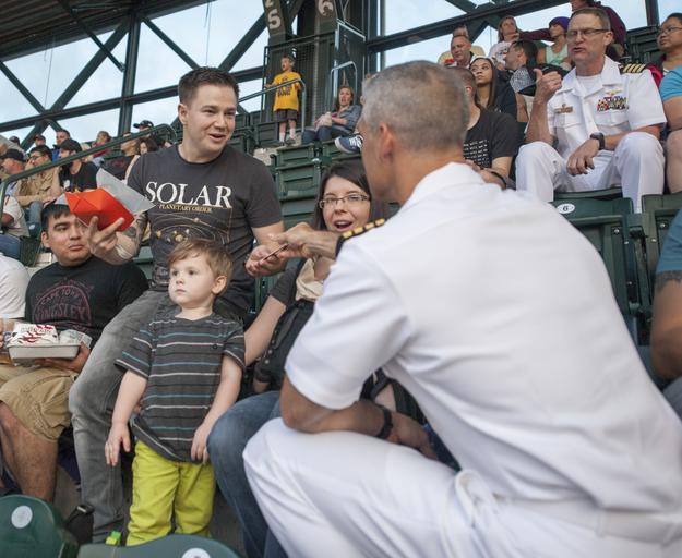 | Keywords: outdoor 130822-N-TC437-132 BREMERTON, Wash. (Aug. 22, 2013) –Executive Officer, Capt. Kyle Higgins talks with Interior Communications Electrician 3rd Class Josh Howard, assigned to Nimitz-class carrier USS John C. Stennis (CVN 74) during Stennis Day at Safeco Field. Stennis is currently undergoing a Docking Planned Incremental Availability Maintenance at Puget Sound Naval Shipyard and Incremental Maintenance Facility. (U.S. Navy Photo by Mass Communication Specialist Seaman Iganacio D. Perez/ Released) 130822-N-TC437-132 BREMERTON, Wash. (Aug. 22, 2013) –Executive Officer, Capt. Kyle Higgins talks with Interior Communications Electrician 3rd Class Josh Howard, assigned to Nimitz-class carrier USS John C. Stennis (CVN 74) during Stennis Day at Safeco Field. Stennis is currently undergoing a Docking Planned Incremental Availability Maintenance at Puget Sound Naval Shipyard and Incremental Maintenance Facility. (U.S. Navy Photo by Mass Communication Specialist Seaman Iganacio D. Perez/ Released) |