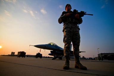 Keywords: u.s. air force usairforce u.s. air national guard usairnationalguard new jersey newjersey nj atlantic city atlanticcity ac 177th fighter wing 177thfighterwing 177thfw f-16c fighting falcon f16cfightingfalcon viper acc air combat command aircombatcommand airplane aircraft military njang air national guard airnationalguard ang atlantic city international airport atlanticcityinternationalairport sunrise security forces securityforces sfs 9/11 911 egg harbor township eggharbortownship united states of america unitedstatesofamerica creative commons royalty free public domain photo photograph digital matt hecht getty reuters ap outdoor jump U.S. Air Force Airman First Class Brett Behrens provides flight line security for F-16C Fighting Falcons from the New Jersey Air National Guard's 177th Fighter Wing "Jersey Devils," at sunrise on Sept. 11, 2013. Twelve years ago, the 177th Fighter Wing was one of the first Air National Guard units to respond to the terrorist attacks on Sept. 11, 2001. In the years since, hundreds of New Jersey Air National Guardsmen have deployed in support of Operation Iraqi Freedom and Operation Enduring Freedom. Behrens is assigned to the 177th Security Forces Squadron, and his home town is West Creek, N.J. (U.S. Air National Guard photo by Tech. Sgt. Matt Hecht/Released) U.S. Air Force Airman First Class Brett Behrens provides flight line security for F-16C Fighting Falcons from the New Jersey Air National Guard's 177th Fighter Wing "Jersey Devils," at sunrise on Sept. 11, 2013. Twelve years ago, the 177th Fighter Wing was one of the first Air National Guard units to respond to the terrorist attacks on Sept. 11, 2001. In the years since, hundreds of New Jersey Air National Guardsmen have deployed in support of Operation Iraqi Freedom and Operation Enduring Freedom. Behrens is assigned to the 177th Security Forces Squadron, and his home town is West Creek, N.J. (U.S. Air National Guard photo by Tech. Sgt. Matt Hecht/Released)