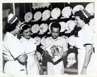 | Keywords: nh yokosuka nhyokosuka japan people photo border 13-1037-045 Nursing Isn't All Work - Enjoying recreation during their off hours, US Navy Nurses, (left to right) Lieutenant Commanders Edith Robinson, Nellie Penkunas, and Margaret Gettle, USN, of the US Naval Hospital, Yokosuka, Japan, examine a piece of Japanese China. 21 Aug 1959 [Officers][Nurses][Women] 13-1037-045 Nursing Isn't All Work - Enjoying recreation during their off hours, US Navy Nurses, (left to right) Lieutenant Commanders Edith Robinson, Nellie Penkunas, and Margaret Gettle, USN, of the US Naval Hospital, Yokosuka, Japan, examine a piece of Japanese China. 21 Aug 1959 [Officers][Nurses][Women] |