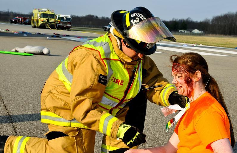 Keywords: air force airforce usaf 182 aw 182aw 182nd airlift wing 182ndairliftwing peoria illinois ang air national guard airnationalguard illinois air national guard illinoisairnationalguard ilang peoria air national guard base peoriaairnationalguardbase peoria angb peoriaangb ngb amc air mobility command airmobilitycommand kpia pia peoria international airport peoriainternationalairport mass casualty masscasualty accident exercise crash injury injuries victim fire department firedepartment firefighter emergency response simulate casualties test civil engineer squadron civilengineersquadron ces training il usa outdoor U.S. Air Force Staff Sgt. Neil Seaman, a firefighter with the 182nd Civil Engineer Squadron, rescues a simulated aircraft crash victim during a mass-casualty exercise in Peoria, Ill., April 12, 2014. An Illinois Air National Guard C-130 Hercules was used to imitate an aircraft crash with 50 casualties on a Gen. Wayne A. Downing Peoria International Airport runway. The airport hosted the tri-annual exercise to test its emergency protocols. Several emergency-response agencies, including the 182nd Civil Engineer Squadron fire department, also participated in the exercise to practice their procedures and training. (U.S. Air National Guard photo by Staff Sgt. Lealan Buehrer/Released) U.S. Air Force Staff Sgt. Neil Seaman, a firefighter with the 182nd Civil Engineer Squadron, rescues a simulated aircraft crash victim during a mass-casualty exercise in Peoria, Ill., April 12, 2014. An Illinois Air National Guard C-130 Hercules was used to imitate an aircraft crash with 50 casualties on a Gen. Wayne A. Downing Peoria International Airport runway. The airport hosted the tri-annual exercise to test its emergency protocols. Several emergency-response agencies, including the 182nd Civil Engineer Squadron fire department, also participated in the exercise to practice their procedures and training. (U.S. Air National Guard photo by Staff Sgt. Lealan Buehrer/Released)