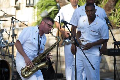 | Keywords: cruisers texas navy band tour cruiserstexasnavybandtour san antonio sanantonio texas usa people outdoor 140519-N-HG258-055 SAN ANTONIO, TEXAS (May 19, 2014) Musician 1st Class Jeremy Saunders, left, of the Navy Band Cruisers, performs on saxophone during an afternoon concert at the Arneson River Theater on the riverwalk in San Antonio, Texas. The U.S. Navy Band Cruisers, based in Washington and led by Senior Chief Musician Leon Alexander, is currently on an 12-day tour of Texas. One of the band's primary responsibilities, national tours increase awareness of the Navy in places that don't see the Navy work on a regular basis. (U.S. Navy photo by MUC Stephen Hassay/Released) 140519-N-HG258-055 SAN ANTONIO, TEXAS (May 19, 2014) Musician 1st Class Jeremy Saunders, left, of the Navy Band Cruisers, performs on saxophone during an afternoon concert at the Arneson River Theater on the riverwalk in San Antonio, Texas. The U.S. Navy Band Cruisers, based in Washington and led by Senior Chief Musician Leon Alexander, is currently on an 12-day tour of Texas. One of the band's primary responsibilities, national tours increase awareness of the Navy in places that don't see the Navy work on a regular basis. (U.S. Navy photo by MUC Stephen Hassay/Released) |
