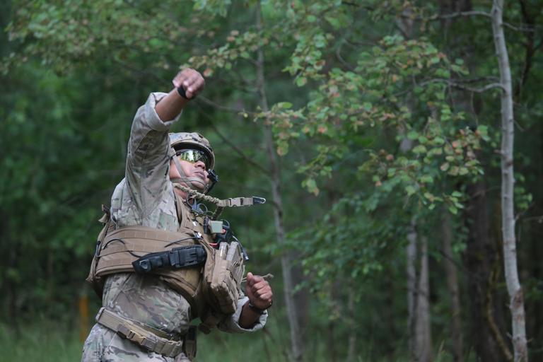 | Keywords: u.s. air force usairforce united states air force unitedstatesairforce usaf ang air combat command aircombatcommand acc air national guard airnationalguard 177th fighter wing 177thfighterwing operation kriegshammer operationkriegshammer exercise training grafenwoehr germany bavaria tacp tactical air control party tacticalaircontrolparty creative commons royalty free public domain photo photograph digital matt hecht getty reuters ap outdoor A U.S. Air Force tactical air control party Airman from the 124th Fighter Wing throws a practice grenade during Operation Kriegshammer, a joint training mission at Grafenwoehr Training Area, Bavaria, Germany on July 14, 2014. (U.S. Air National Guard photo by Tech. Sgt. Matt Hecht/Released) A U.S. Air Force tactical air control party Airman from the 124th Fighter Wing throws a practice grenade during Operation Kriegshammer, a joint training mission at Grafenwoehr Training Area, Bavaria, Germany on July 14, 2014. (U.S. Air National Guard photo by Tech. Sgt. Matt Hecht/Released) |