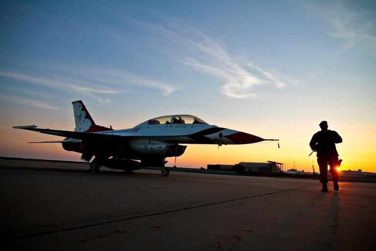 Keywords: united states air force unitedstatesairforce u.s. air force usairforce usaf ang air national guard airnationalguard new jersey newjersey nj atlantic city atlanticcity atlantic city air national guard base atlanticcityairnationalguardbase 177th fighter wing 177thfighterwing thunderbirds demonstration team demonstrationteam air show airshow thunder over the boardwalk thunderovertheboardwalk security forces squadron securityforcessquadron sfs security sunrise morning patrol guard military photo airman aircraft airplane viper f-16d f16d fighting falcon fightingfalcon airport ac egg harbor township eggharbortownship united states unitedstates creative commons royalty free public domain photograph digital matt hecht getty reuters ap vehicle outdoor jet U.S. Air Force Staff Sgt. Luis Rodriguez from the New Jersey Air National Guard's 177th Security Forces Squadron does an early morning walkaround of U.S. Air Force F-16D Fighting Falcon #8 from the Thunderbirds Demonstration Team at Atlantic City Air National Guard Base, N.J. on Aug. 11, 2014. The Thunderbirds are performing in N.J. for the Atlantic City "Thunder Over the Boardwalk Airshow" on Aug. 13. (U.S. Air National Guard photo by Tech. Sgt. Matt Hecht/Released) U.S. Air Force Staff Sgt. Luis Rodriguez from the New Jersey Air National Guard's 177th Security Forces Squadron does an early morning walkaround of U.S. Air Force F-16D Fighting Falcon #8 from the Thunderbirds Demonstration Team at Atlantic City Air National Guard Base, N.J. on Aug. 11, 2014. The Thunderbirds are performing in N.J. for the Atlantic City "Thunder Over the Boardwalk Airshow" on Aug. 13. (U.S. Air National Guard photo by Tech. Sgt. Matt Hecht/Released)