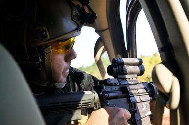 | Keywords: air force airforce usaf peoria illinois ang air national guard airnationalguard national guard nationalguard ilang ngb northern strike northernstrike mins2014 crtc alpena grayling calfex joint multinational nato coalition exercise tacp jtac romad spec ops specops special operations specialoperations asos 169 combat training reconnaissance recon air power airpower ground force groundforce il usa U.S. Air Force Master Sgt. John M. Oliver, a tactical air control party specialist with the 169th Air Support Operations Squadron, fires out of a moving vehicle at enemy forces during a reconnaissance mission at Operation Northern Strike in Grayling Air Gunnery Range, Grayling, Mich., Aug. 14, 2014. Northern Strike was a 3-week-long exercise led by the National Guard that demonstrated the combined power of joint and multinational air and ground forces. TACPs with the Air National Guard’s 169th ASOS from Peoria, Ill., and more than 5,000 other armed forces members from 12 states and two coalition nations participated in the combat training. (U.S. Air National Guard photo by Staff Sgt. Lealan Buehrer/Released) U.S. Air Force Master Sgt. John M. Oliver, a tactical air control party specialist with the 169th Air Support Operations Squadron, fires out of a moving vehicle at enemy forces during a reconnaissance mission at Operation Northern Strike in Grayling Air Gunnery Range, Grayling, Mich., Aug. 14, 2014. Northern Strike was a 3-week-long exercise led by the National Guard that demonstrated the combined power of joint and multinational air and ground forces. TACPs with the Air National Guard’s 169th ASOS from Peoria, Ill., and more than 5,000 other armed forces members from 12 states and two coalition nations participated in the combat training. (U.S. Air National Guard photo by Staff Sgt. Lealan Buehrer/Released) |