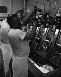| Keywords: history vietnam war vietnamwar african-american africanamerican uss repose ussrepose hospital ship hospitalship blackandwhite monochrome indoor black and white 14-0027-002 Blood bank in operation aboard the USS Repose (AH-16) off the coast of South Vietnam. February 1966. [hospital ship; Vietnam War; African-American; Hospital Corps]. USN 1115151E. Photo by J.C. Cote, PH1, USN. 14-0027-002 Blood bank in operation aboard the USS Repose (AH-16) off the coast of South Vietnam. February 1966. [hospital ship; Vietnam War; African-American; Hospital Corps]. USN 1115151E. Photo by J.C. Cote, PH1, USN. |