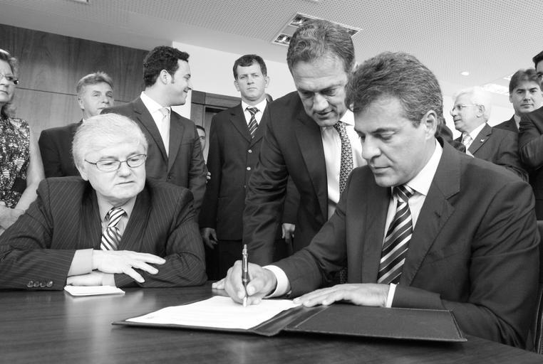 | Keywords: valdir rossoni valdirrossoni plauto miró plautomiró beto rich betorich bernardo carli bernardocarli blackandwhite groupshot people monochrome indoor black and white Presidente e 1º secretário da Assembleia Legislativa, deputados Valdir Rossoni (PSDB) e Plauto Miró (DEM), respectivamente, participam da solenidade de assinatura de convênios para investimentos em escolas do Paraná. Foto: Nani Gois/Alep (crédito obrigatório) Presidente e 1º secretário da Assembleia Legislativa, deputados Valdir Rossoni (PSDB) e Plauto Miró (DEM), respectivamente, participam da solenidade de assinatura de convênios para investimentos em escolas do Paraná. Foto: Nani Gois/Alep (crédito obrigatório) |