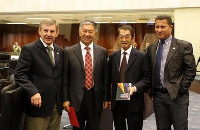 | Keywords: Empresário Júlio Hideo Ando, ex-deputado estadual e ex-vereador de Curitiba, que lança o livro “Dicas de Campanha Municipal: Vereador e Prefeito”, na Assembleia Legislativa, com os deputados Elio Rusch (DEM), Teruo Kato (PMDB) e Adelino Ribeiro (PSL). Foto: Nani Gois/Alep (crédito obrigatório) |