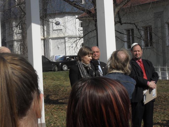 | Keywords: 14 3 2014 - zidovska obec Teplice 13.JPG cs Teplická židovská obec Teplice si dne 14 března 2014 připomíná 600 let od příchodu Židů do Teplic a zároveň i 75 let od vypálení Teplické synagogy během tzv Křišťálové noci U mikrofonu historička Lenka Burgerová own Safranek-interia eu 14 března 2014 Memorial to synagogue in Teplice 2014 Jewish memorial meeting in Teplice Cc-zero | ||||