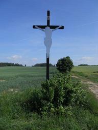 | Keywords: 14. dřevěný kříž u cesty do Jamolic- Blahuv kříž.JPG cs Původně na kříži bývala plechová silueta s malovanou a zlacenou postavou ukřižovaného Krista Ta pravděpodobně roku 2007 upadla a byla ukradena Dnes je na kříži nevzhledná nerezová silueta Kříž nechali opravit v roce 1960 Blahovi Jan a Marie z Dukovan č p 12 own Obecdukovany po roce 1908 oprava 1960 Crosses in Vysočina Region Dukovany | ||||
