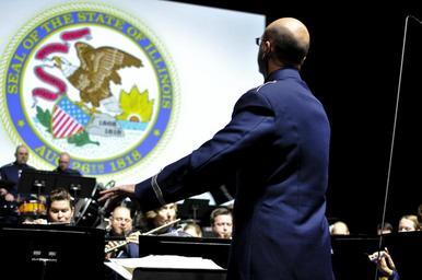 | Keywords: army air force illinois national guard inauguration ceremony governor elect bruce rauner springfield ill. ill state commander chief soldiers airmen 144 566 band peoria usa groupshot people U.S. Air Force Maj. Bryan M. Miller, commander of the 566th Air Force Band, conducts the Illinois National Guard's 144th Army Band and 566th Air Force Band as they perform at the inauguration ceremony of Governor-elect Bruce Rauner in Springfield, Ill., Jan. 12, 2015. As Illinois' governor, Rauner will serve as the commander in chief for the Soldiers and Airmen of the Illinois National Guard while they are not under federal activation. (U.S. Air National Guard photo by Staff Sgt. Lealan Buehrer/Released) U.S. Air Force Maj. Bryan M. Miller, commander of the 566th Air Force Band, conducts the Illinois National Guard's 144th Army Band and 566th Air Force Band as they perform at the inauguration ceremony of Governor-elect Bruce Rauner in Springfield, Ill., Jan. 12, 2015. As Illinois' governor, Rauner will serve as the commander in chief for the Soldiers and Airmen of the Illinois National Guard while they are not under federal activation. (U.S. Air National Guard photo by Staff Sgt. Lealan Buehrer/Released) |