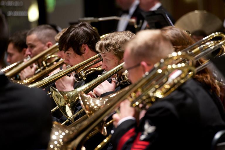 | Keywords: brass instrument music performer people musician concert band indoor BRUNSWICK, Ga. (March 8, 2015) Students from Brunswick High School and the Glynn Academy perform a piece with the U.S. Navy Band during a concert at the Jekyll Island Convention Center in Brunswick, Ga. The U.S. Navy Band is touring the Southeast United States, with performances in 32 cities. (U.S. Navy photo by Chief Musician Adam Grimm/Released) BRUNSWICK, Ga. (March 8, 2015) Students from Brunswick High School and the Glynn Academy perform a piece with the U.S. Navy Band during a concert at the Jekyll Island Convention Center in Brunswick, Ga. The U.S. Navy Band is touring the Southeast United States, with performances in 32 cities. (U.S. Navy photo by Chief Musician Adam Grimm/Released) |