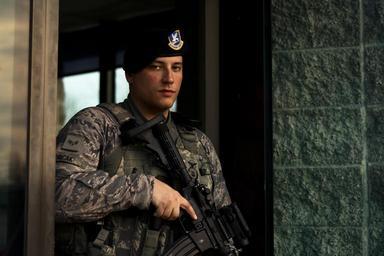 | Keywords: air force usaf 182 aw 182nd airlift wing peoria illinois ill ang national guard il angb ngb mobility command amc buehrer eu280 z #afd2015 afd2015 armed forces day sfs security 3n0x1 protection military police mp second shift usa people U.S. Air Force Senior Airman Scott J. Pericak, an installation entry controller with the 182nd Security Forces Squadron, watches the outbound lane during second shift at the 182nd Airlift Wing main gate in Peoria, Ill., April 8, 2015. Security forces Airmen are the force protection element of the Air Force, ensuring protection of base personnel, property and resources 24/7. (U.S. Air National Guard photo by Staff Sgt. Lealan Buehrer/Released) U.S. Air Force Senior Airman Scott J. Pericak, an installation entry controller with the 182nd Security Forces Squadron, watches the outbound lane during second shift at the 182nd Airlift Wing main gate in Peoria, Ill., April 8, 2015. Security forces Airmen are the force protection element of the Air Force, ensuring protection of base personnel, property and resources 24/7. (U.S. Air National Guard photo by Staff Sgt. Lealan Buehrer/Released) |