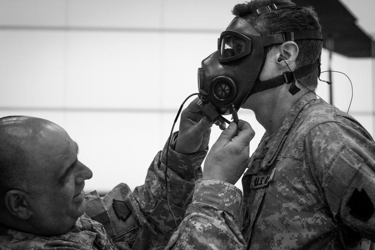 | Keywords: u.s. army usarmy aviation aasf army aviation support facility armyaviationsupportfacility nj new jersey newjersey joint base mdl jointbasemdl joint base mcguire-dix-lakehurst jointbasemcguiredixlakehurst new jersey army national guard newjerseyarmynationalguard national guard nationalguard uh-60 uh60 black hawk blackhawk maintenance soldier soldiers wash racks washracks military photo usa royalty free public domain gov getty reuters ap public domain publicdomain royalty free royaltyfree 1-150th assault helicopter battalion 1150thassaulthelicopterbattalion ahb helicopter uh-72 uh72 lakota night vision nightvision formation flight army blackandwhite monochrome outdoor sculpture black and white U.S. Army Staff Sgt. Paul Cimino,left, instructs Sgt. Ralph Foy, right, with gas mask procedures at the Army Aviation Support Facility, which is located at Joint Base McGuire-Dix-Lakehurst, N.J., April 14, 2015. Both soldiers are UH-60 Black Hawk helicopter crew chiefs from the New Jersey Army National Guard's 1-150th Assault Helicopter Battalion. (U.S. Air National Guard photo by Tech. Sgt. Matt Hecht/Released) U.S. Army Staff Sgt. Paul Cimino,left, instructs Sgt. Ralph Foy, right, with gas mask procedures at the Army Aviation Support Facility, which is located at Joint Base McGuire-Dix-Lakehurst, N.J., April 14, 2015. Both soldiers are UH-60 Black Hawk helicopter crew chiefs from the New Jersey Army National Guard's 1-150th Assault Helicopter Battalion. (U.S. Air National Guard photo by Tech. Sgt. Matt Hecht/Released) |