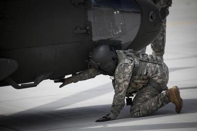 MAKE A MEME View Large Image New Jersey Army National Guard Staff Sgt. Torie Fisher, a UH-60 Black Hawk helicopter crew chief from the 1-150 Assault Helicopter Battalion performs pre-flight checks before a training mission at the Army Aviation Support Facility, on ...