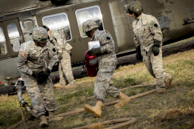 MAKE A MEME View Large Image New Jersey Army National Guard Soldiers refuel a UH-60 Black Hawk helicopter from the 1-150 Assault Helicopter Battalion at a Forward Arming and Refueling Point located at Coyle Drop Zone, Joint Base McGuire-Dix-Lakehurst, N.J., April 16, ...
