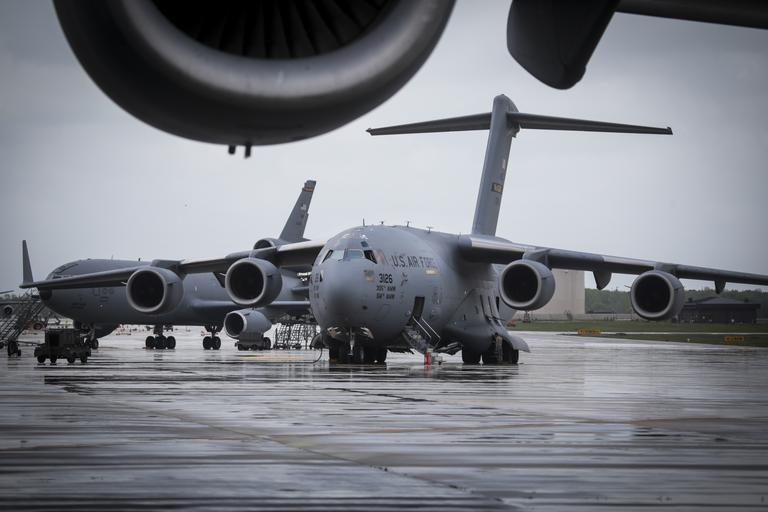 Keywords: usa u.s. army usarmy usaf u.s. air force usairforce ang air national guard airnationalguard air mobility command airmobilitycommand joint base mcguire-dix-lakehurst jointbasemcguiredixlakehurst joint base mdl jointbasemdl aviation airplane cargo c-17 c17 globemaster 50th ibct 50thibct new jersey army national guard newjerseyarmynationalguard new jersey newjersey national guard nationalguard n.j. nj public domain royalty free getty reuters ap public domain publicdomain royalty free royaltyfree military aircraft photo photograph combat iraq afghanistan war operation enduring freedom operationenduringfreedom operation iraqi freedom operationiraqifreedom f-16 f16 fighting falcon fightingfalcon strike eagle strikeeagle sunrise sunset air force one airforceone red flag alaska redflagalaska green flag east combat eastcombat aviation pilot pilots military aviationpilotpilotsmilitary pilot helicopter helo rotary wing fixed wing fixedwing jet fighter plane A U.S. Air Force C-17 Globemaster III (front) and KC-10 Extender, both from the 305th Air Mobility Wing sit on the flight line at Joint Base McGuire-Dix-Lakehurst after a rain storm on May 11, 2015. (U.S. Air National Guard photo by Tech. Sgt. Matt Hecht/Released) A U.S. Air Force C-17 Globemaster III (front) and KC-10 Extender, both from the 305th Air Mobility Wing sit on the flight line at Joint Base McGuire-Dix-Lakehurst after a rain storm on May 11, 2015. (U.S. Air National Guard photo by Tech. Sgt. Matt Hecht/Released) |