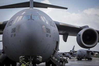 Keywords: usa u.s. army usarmy usaf u.s. air force usairforce ang air national guard airnationalguard air mobility command airmobilitycommand joint base mcguire-dix-lakehurst jointbasemcguiredixlakehurst joint base mdl jointbasemdl aviation airplane cargo c-17 c17 globemaster 50th ibct 50thibct new jersey army national guard newjerseyarmynationalguard new jersey newjersey national guard nationalguard n.j. nj public domain royalty free getty reuters ap public domain publicdomain royalty free royaltyfree military aircraft photo photograph combat iraq afghanistan war operation enduring freedom operationenduringfreedom operation iraqi freedom operationiraqifreedom f-16 f16 fighting falcon fightingfalcon strike eagle strikeeagle sunrise sunset air force one airforceone red flag alaska redflagalaska green flag east combat eastcombat aviation pilot pilots military aviationpilotpilotsmilitary pilot helicopter helo rotary wing fixed wing fixedwing jet fighter plane vehicle A C-17 Globemaster III from the New York Air National Guard's 105th Airlift Wing sits parked on the flight line on Joint Base McGuire-Dix-Lakehurst, N.J. after a rain storm, May 11, 2015. The New York Air National Guard was assisting the New Jersey National Guard with a deployment exercise. (U.S. Air National Guard photo by Tech. Sgt. Matt Hecht/Released) A C-17 Globemaster III from the New York Air National Guard's 105th Airlift Wing sits parked on the flight line on Joint Base McGuire-Dix-Lakehurst, N.J. after a rain storm, May 11, 2015. The New York Air National Guard was assisting the New Jersey National Guard with a deployment exercise. (U.S. Air National Guard photo by Tech. Sgt. Matt Hecht/Released)