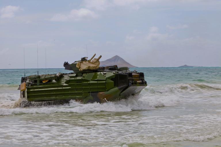 Keywords: bellows air force base bellowsairforcebase hawaii usa outdoor vehicle boat Amphibious Assualt Vehicles, with Battalion Landing Team, 15th Marine Expeditionary Unit, conduct an amphibious landing demonstration at Marine Corps Training Area Bellows, Hawaii May 19, 2015. The landing is part of Culebra Koa 15, an on-going joint sea-basing exercise taking place in Hawaii during the MARFORPAC-hosted U.S. Pacific Command Amphibious Leaders Symposium (PALS). PALS is designed to bring together senior leaders of allies and partners Marine Corps, naval infantries, and militaries spanning the Indo-Asia-Pacific region with interest in military amphibious capability development. This year, 22 nations sent representatives to observe the training. (U.S. Marine Corps photo by Cpl.Hilda Becerra) Amphibious Assualt Vehicles, with Battalion Landing Team, 15th Marine Expeditionary Unit, conduct an amphibious landing demonstration at Marine Corps Training Area Bellows, Hawaii May 19, 2015. The landing is part of Culebra Koa 15, an on-going joint sea-basing exercise taking place in Hawaii during the MARFORPAC-hosted U.S. Pacific Command Amphibious Leaders Symposium (PALS). PALS is designed to bring together senior leaders of allies and partners Marine Corps, naval infantries, and militaries spanning the Indo-Asia-Pacific region with interest in military amphibious capability development. This year, 22 nations sent representatives to observe the training. (U.S. Marine Corps photo by Cpl.Hilda Becerra)